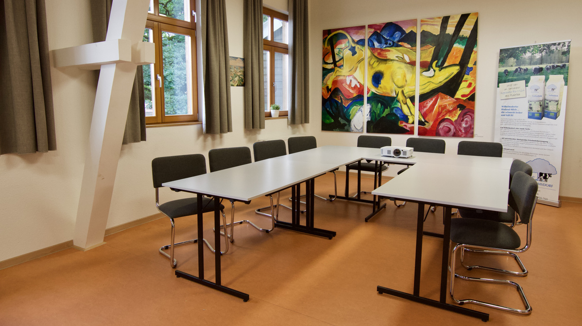 Neben Hofführungen und Picknick können Sie auch unseren Seminarraum inkl. Toilettenanlage für Ihre Gruppe buchen. Hier ist Platz für 30 bis max. 40 Personen. Der Raum ist im Rahmen von Betriebsbesuchen vielfältig nutzbar – für Vorträge, Workshops oder auch zum Essen.