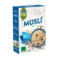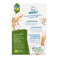 HAFERvollkornflocken* 43 %, GERSTENvollkornflocken* 20%, ROGGENvollkornflocken* 15 %, DINKELvollkornflocken*¹ 10 %, Leinsamen* 5%, Sonnenblumenkerne* 2%, HAFERspeisekleie*, Kürbiskerne* 2%, SESAM*.| Energie | Fett | gesättigte Fettsäuren | Kohlenhydrate | Zucker | Ballaststoffe | Eiweiss | Salz |