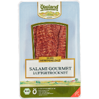 100g Produkt sind hergestellt aus 150g Schweinefleisch*, Meersalz, Trockenglukosesirup*, Dextrose*, Gewürze* (Paprika*, Pfeffer*, Salbei*, Rosmarin*, Acerolakirsche*).| Energie | Fett | gesättigte Fettsäuren | Kohlenhydrate | Zucker | Eiweiss | Salz |