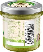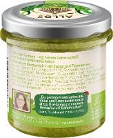 Spinat* (44%), Zwiebeln* 18%, Sonnenblumenkerne*, Sonnenblumenöl*, Pinienkerne* (3%), Agavendicksaft*, Kartoffelstärke*, Knoblauch* (2%), Zitronensaftkonzentrat*, Meersalz, SENF* (Wasser, SENFSAATEN*, Branntweinessig*, Meersalz, Kurkuma*, Koriander*, Paprika* edelsüß, Piment*), Zwiebelpulver*, schwarzer Pfeffer*, Verdickungsmittel: Johannisbrotkernmehl*.| Energie | Fett | gesättigte Fettsäuren | Kohlenhydrate | Zucker | Ballaststoffe | Eiweiss | Salz |