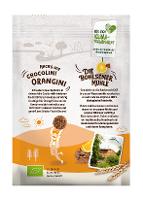 WEIZENMEHL Type 1050* 34%, Zartbitterschokolade* 25% (Kakaomasse*, Rohrzucker*, Kakaobutter*, Emulgator: Sonnenblumen-Lecithine*), Rübenzucker*, ungehärtetes Palmfett*, stark entölter Kakao* 2%, Orangenschale* <1%, Backtriebmittel (Ammoniumbicarbonat, Natriumhydrogencarbonat), Orangenöl* <1%, Meersalz.Energie | Fett | gesättigte Fettsäuren | Kohlenhydrate | Zucker | Ballaststoffe | Eiweiss | Salz |