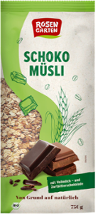 HAFERVOLLKORNFLOCKEN*, WEIZENVOLLKORNFLOCKEN*20%, GERSTENVOLLKORNFLOCKEN*, Vollmilchschokolade* 7,4% (Rohrohrzucker*, Kakaobutter*, VOLLMILCHPULVER*, Kakaomasse*), Zartbitterschokolade* 4,4% (Kakaomasse*, Rohrohrzucker*, Kakaobutter*), Dattelsaftkonzentrat*, Cornflakes* (Mais*, Rohrohrzucker* , Meersalz), Reisextrudat* (Vollkornreismehl*), Kakaopulver* stark entölt 1,7%, Sonnenblumenöl*, Kokosraspel*, Amaranth* gepufft, Rohrohrzucker* , Überzugsmittel: Gummi arabicum*Energie | Fett | gesättigte Fettsäuren | Kohlenhydrate | Zucker | Ballaststoffe | Eiweiss | Salz |