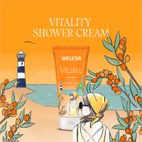 Starten Sie mit Weleda Sanddorn Crèmedouche vital in den Tag. Die reinen ätherischen Öle von Orangen, Mandarinen und Grapefruits und der Duft des sonnengereiften Sanddorns wirken belebend