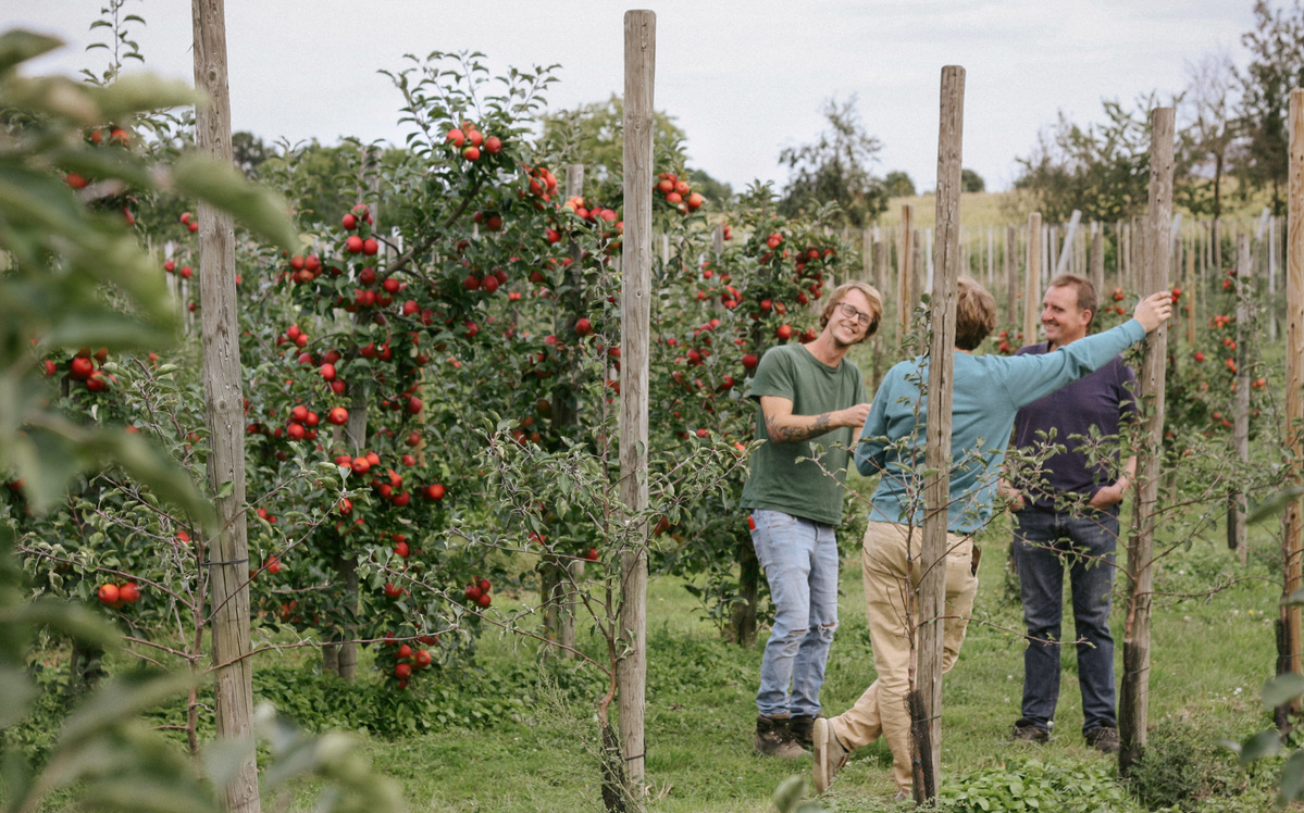 Die Hederwiesen-Obst GbR - das sind Philipp Mühlhausen, Christian Jäger und Stefan Heber. Gegründet haben sie ihre GbR im Mai 2021 mit dem Ziel den Obstbaubetrieb "Pohlmeyer´s Obstwiese" in Salzkotten weiterzuführen. Seitdem bauen sie Stein- und Kernobst nach den Bioland Richtlinien auf etwa 15 ha Anbauflächen in Salzkotten-Upsprunge an. Auf dem Obsthof finden sich Apfel- und Birnenbäume, aber auch Zwetschgen und Mirabellen werden angebaut. Klasse, wenn junge Leute ein Stück Land ökologisch weiterführen!