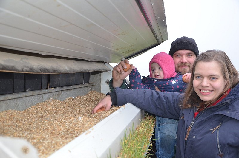 Die junge Familie Hohnhorst bewirtschaftet einen kleinen Bioland-Hof westlich von Borgholzhausen und hält dort 30 Milchkühe sowie Hühner. Das Besondere an der Hühnerhaltung von Annika Hohnhorst ist, dass die Hühner in kleinen Mobilställen zu je 200 Tieren gehalten werden. Diese Mobilställe werden ganz regelmäßig auf frische Wiesen umgesetzt, damit die Hühner immer im jungen, hohen Gras laufen können und sich dort die Leckerbissen zwischen den Grashalmen herauspicken können. Diese Form der Hühnerhaltung ist deutlich aufwändiger als in einem stationären Stall mit Auslauf. Deshalb sind die Mobilstall-Eier in unserem Onlineshop auch etwas teurer als die anderen Eier, die Sie bei uns finden können.