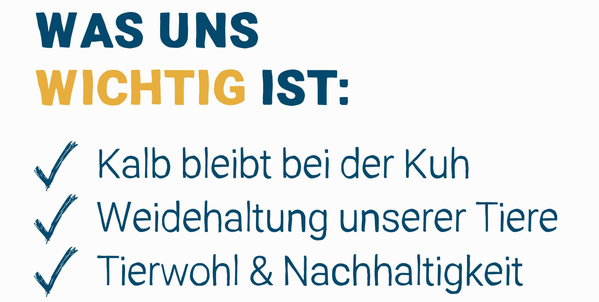 Mit dem PLUS an Tierwohl – durch unsere kuhgebundene Kälberaufzucht bieten wir nicht nur unseren Kühen und Kälbern, sondern auch euch als Kundinnen und Kunden ein deutliches MEHR an Tierwohl. Um dies gut zu kommunizieren, findet ihr die Informationen zu unserer kuhgebundenen Kälberaufzucht auch auf unseren Milch- und Joghurtverpackungen.